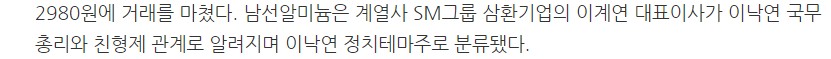 하지만, 남선알미늄이 SM그룹 상장사 중에서