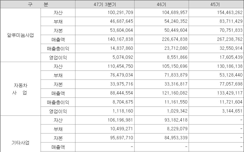 현재는 알루미늄 부문(건축용 새시 제작)이