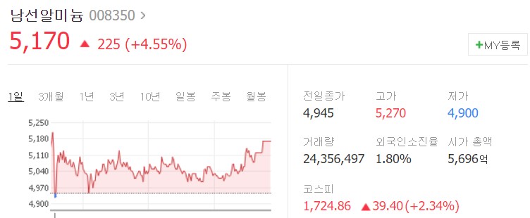 묶여있는 남선알미늄으로 돈이 몰리는 것은
