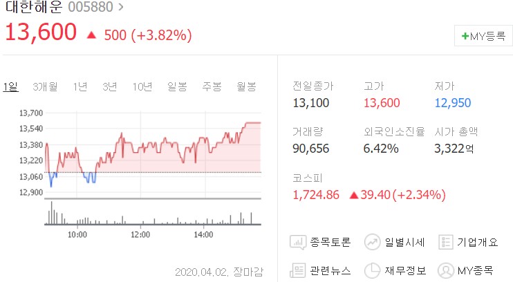 티케이케미칼, 대한해운의 다른 상장사들이 있습니다.